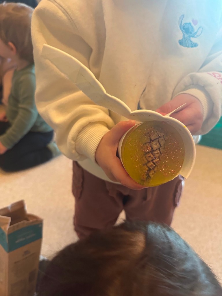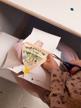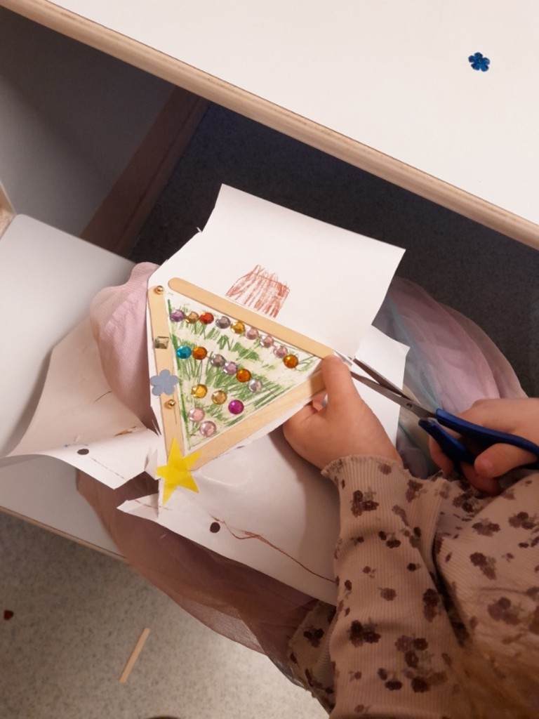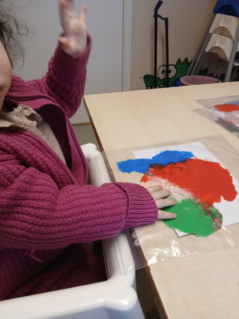 Barna har fått uttrykke seg og være med på ulike kunstaktiviteter denne vinteren. Vi har malt ute i snøen, lagd vår egen modelleire og lagt opp til at barna skal kunne klippe, lime og male gjennom sine egne uttrykk og ferdigheter.